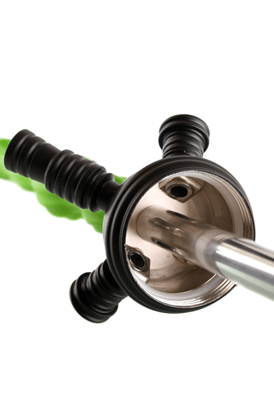 La Cachimba Kaya-Shisha Green Neon SPN 630 Green es una cachimba con la peculiaridad del material con la que es fabricada. Recipiente de vidrio, con rosca metálica revestida en color negro, eje en silicona de color verde. La dimensión de este modelo es de aproximadamente de 73 cm, incluyendo la cazoleta.
